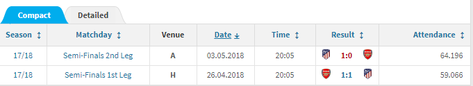 아스날의 전체 대회 전적입니다.